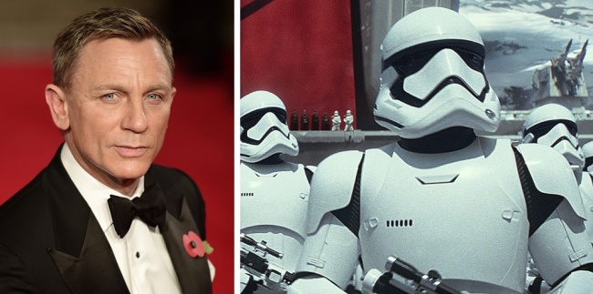 Lo tau gak Bro? Sebenernya, pemeran James Bond ini perna muncul di film Star Wars lho. Daniel Craig ternyata muncul sekilas di ‘Star Wars: The Force Awakens’ pada 2015 lalu. Sayangnya emang banyak banget yang gak tau atas kehadirannya di film itu karena dirinya memakai kostum Storm Trooper lengkap dengan helm yang menutupi wajahnya.