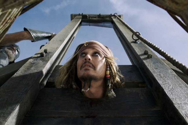 Di adegan itu, Kapten Jack Sparrow harus bertanggung jawab atas tindak kejahatan yang dilakukannya. Dia divonis hukuman mati dan akan dipenggal kepalanya menggunakan Guillotine. Namun acara hukuman mati tersebut pun menjadi kacau setelah rekan-rekan Jack datang untuk menyelamatkannya.