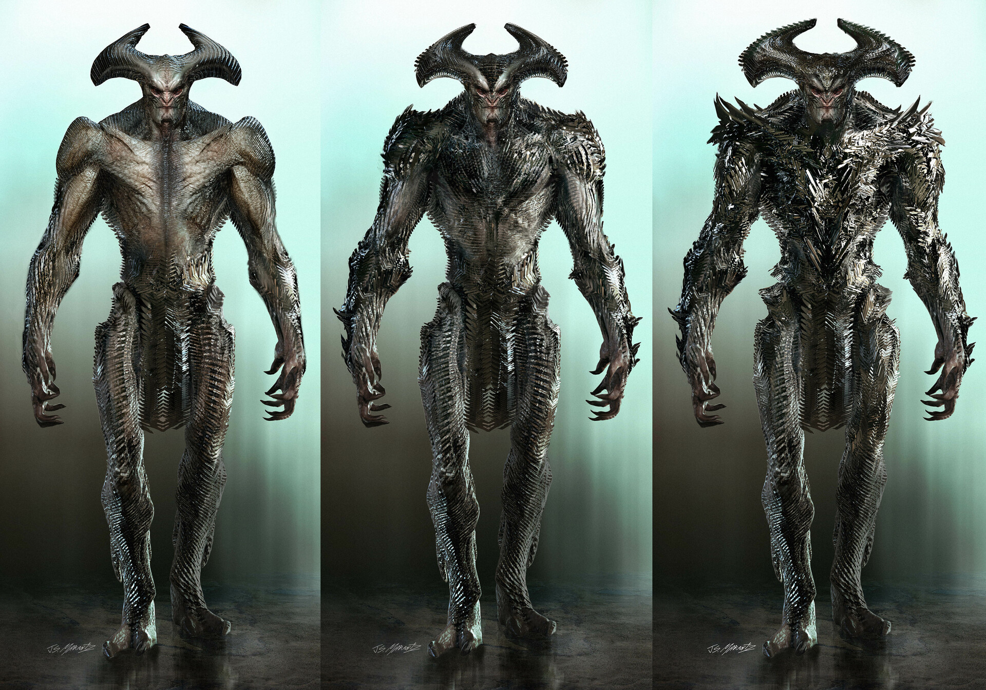 Sedangkan untuk Steppenwolf versi Snyder Cut, sang jenderal adalah alien dengan tubuh yang lebih besar dan gak punya kemiripan dengan manusia. Steppenwolf versi berikut ini tidak menggunakan armor. Bentuk tanduk yang ada di kepalanya adalah benar-benar sebuah tanduk. Membuat Steppenwolf adalah sesosok makhluk yang benar-benar berbeda.