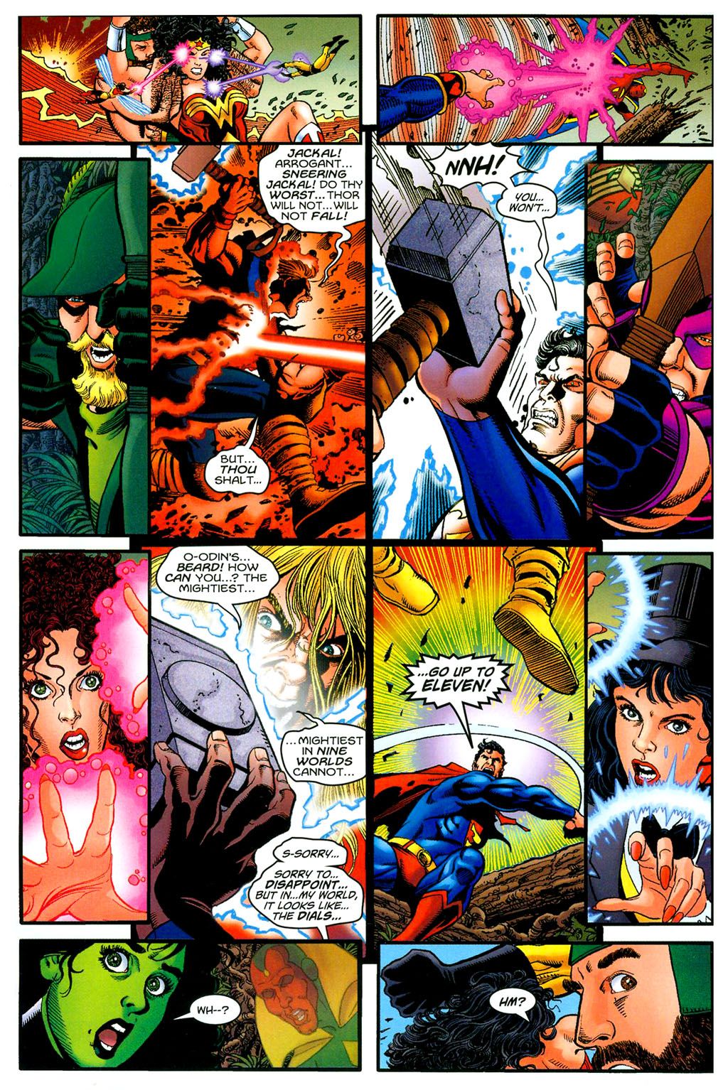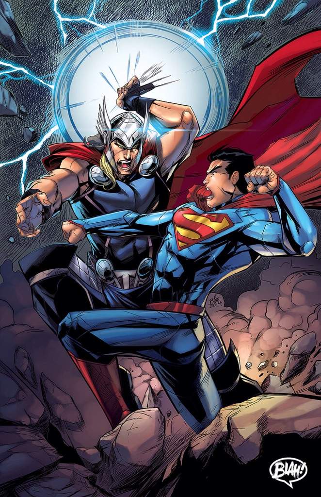 Saat akan mengambil Cosmic Cube milik DC, Thor harus berhadapan dengan Superman dalam sebuah pertarungan. Banyak yang berpendapat bahwa Thor bakal menang karena dia adalah seorang dewa yang mengandalkan petir dari hasil sihirnya yang tertanam dalam Mjolnir. Sedangkan, kelemahan terbesar Superman selain batu Kryptonite adalah kekuatan sihir.