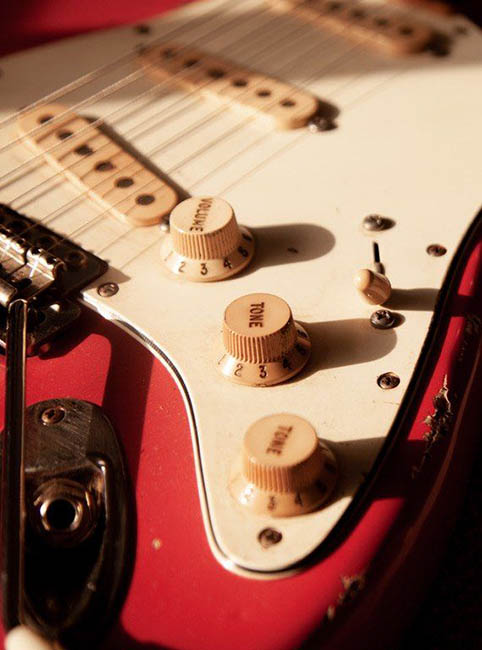 Stratocaster ada tiga knob. Fungsinya buat volume master dan dua untuk tone. Switch di Stratocaster juga unik, ada buat depan, depan tengah, tengah, tengah belakang dan belakang doang.