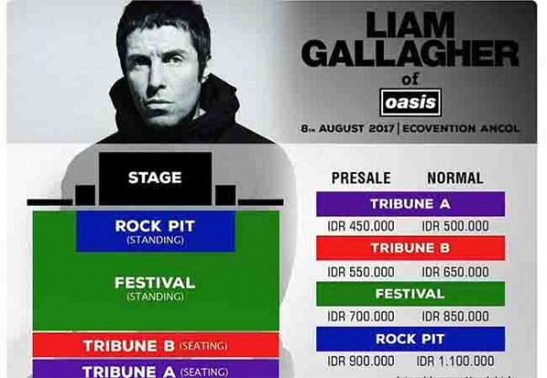 Dan, baru-baru harga tiket konser Liam pun udah diumumin. Harga tiket dimulai dari harga Rp 450 ribu untuk kelas Tribune A, Rp 550 ribu untuk Tribune B, Rp 700 ribu untuk Festival dan Rp 900 ribu untuk Rock Pit.