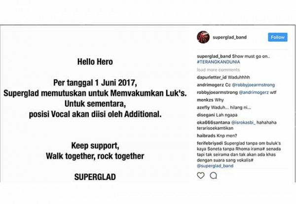 Keputusan ini cukup mengejutkan melihat Superglad baru aja merilis album 'Terangkan Dunia'. Album itu dirilis pada April lalu.