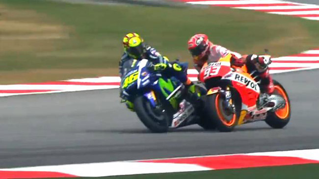 Namun, Rossi gagal menjadi juara setelah mengalami insiden dengan Marquez di GP Malaysia. Karena kesal dihalangi untuk menang, Rossi terlihat menyenggol Marquez sehingga pembalap Respol Honda itu terjatuh.