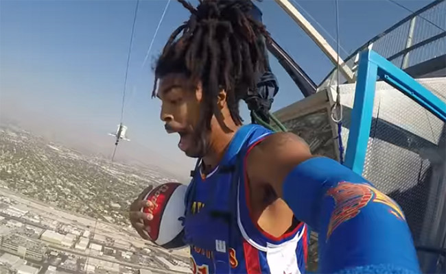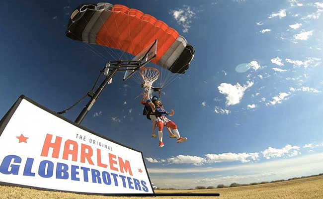 Pebasket bernama Hammer Harrison menggelar aksi dunk tertinggi di dunia lantaran terjun dari ketinggian 13 ribu kaki.