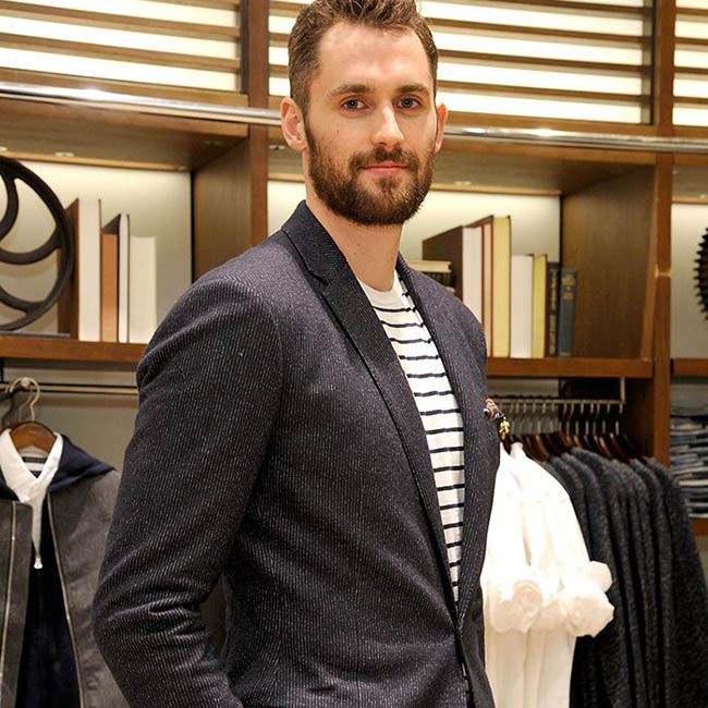 Kerap doyan menggunakan blazer panjang, Kevin Love terlihat sangat pantas dengan tinggi badannya yang tembus 200 sentimeter lebih.