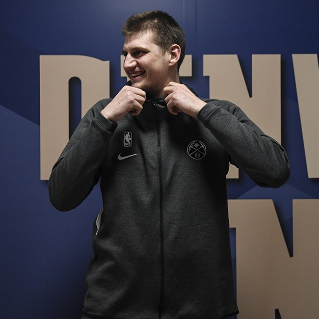 Nikola Jokic benar-benar nyaman berkaos dan celana panjang saja. Ia sesekali menggunakan sweater dengan warna aman.