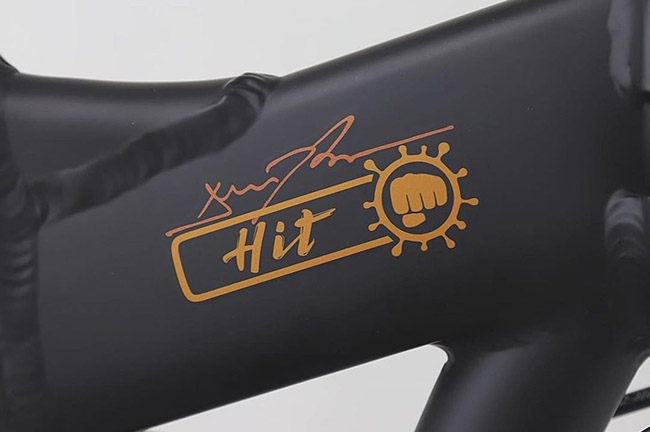 Sepeda itu bernama Dahon HIT. Di framenya, Dahon memberikan ilustrasi berupa kepalan tangan yang seolah menghantam virus corona.