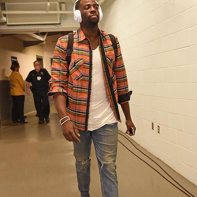 Sesekali, khas orang Amerika nih, Draymond Green juga memakai jaket yang bermotif flanel ala Seattle.