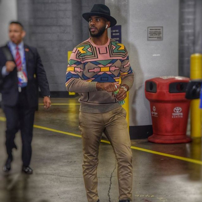 Chris Paul juga sering memakai celana pendek di atas dengkul dipadu dengan atasan yang serius.
