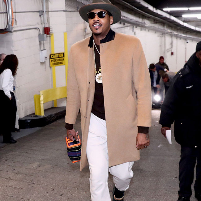 Carmelo Anthony sangat seneng pakai luaran blazer panjang yang melebihi pinggang.
