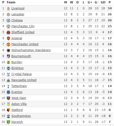 Berikut ini adalah klasemen sementara hingga pekan ke 12, Bro.