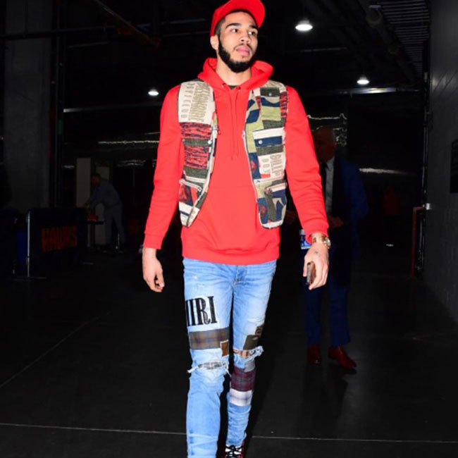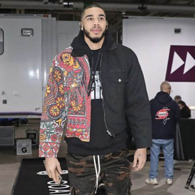 Kerap menggunakan jaket jins dengan warna kontras dan desain asimetris, Jayson Tatum suka banget style yang eksentrik.