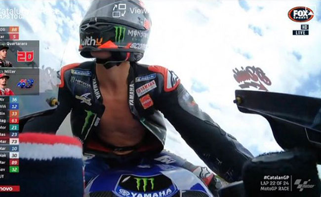 "Saya tidak tahu apa yang terjadi. Saya hanya mengetahui kalau jaket balap saya mulai terbuka di lap kelima. Saya berusaha untuk menempatkannya ke posisi normal, tapi tidak bisa," ujar Quartararo yang finish ketiga.