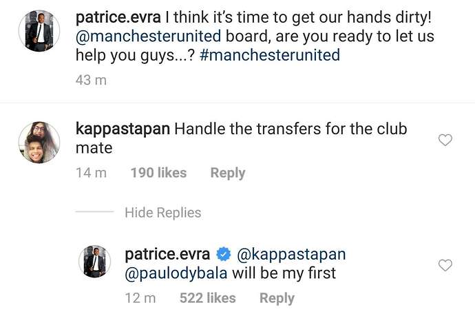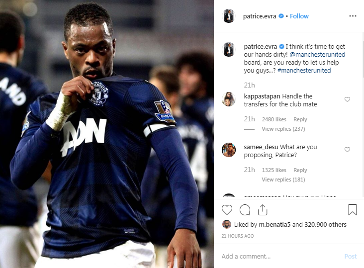 Di sana Evra menulis “our” yang mengindikasikan dirinya bersama legenda yang lain bakal siap menggantikan jajaran yang ada dan melakukan perombakkan. Secara logika memang legenda-legenda klub tau banyak tentang klub tersebut.