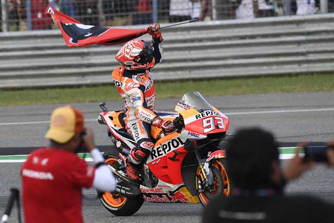 "Mengetahui bahwa tidak ada yang mudah, kami mencoba yang terbaik dari sisi teknik, dan juga Marc mencoba dengan maksimal dari sisi pengendara, dan juga saya sangat menghargai seluruh tim, tim Repsol Honda melakukan pekerjaan yang sangat fantastis dan selalu berkonsentrasi pada semua detail. Dan itulah mengapa hasil hari ini adalah simbol untuk musim ini. Kami mencoba, mencoba, mencoba, dan akhirnya kami memenangkan perlombaan, itu fantastis," tukasnya.