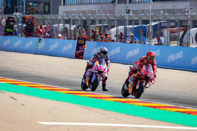 Bagnaia berada di tempat kedua. Pembalap Aprilia Aleix Espargaro mencuri podium ketiga.