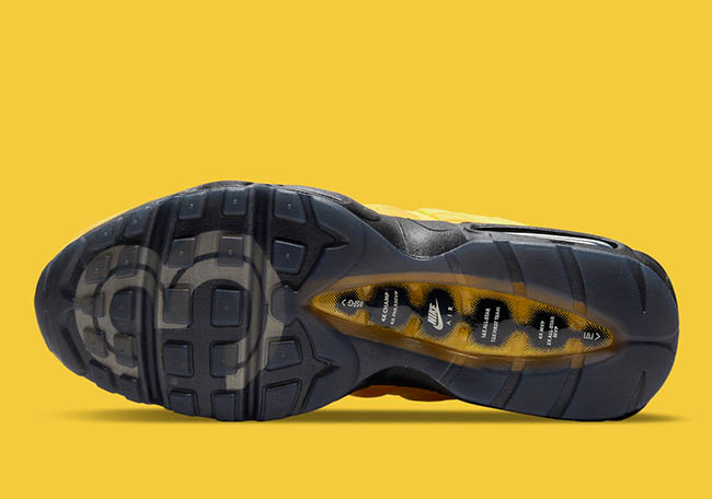 Nike Air Max 95 edisi LeBron James Home Team ini juga menampilkan outsole semi-translucent dengan branding angka 2 dan 3. Midsole Air Max tebal dalam warna hitam menyempurnakan dan membuat warna-warna di atasnya semakin mencolok.