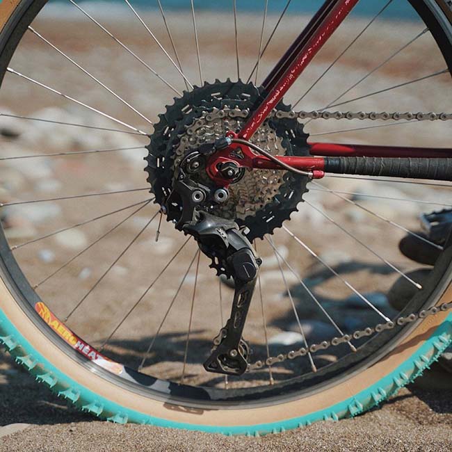Sepeda itu semakin laju berkat rear derailleur Deore XT RD-M8000 dari Shimano dan single chainring dari brand yang sama.