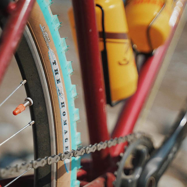 Julia Karpacheva sang pemilik memberikan warna senada dengan yang ada di frame itu. Botol minum dan bar tape dari Gel Cork Tape diberi warna kuning.