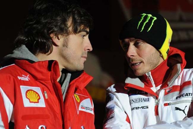 Valentino Rossi dan Fernando Alonso memiliki banyak kesamaan. Keduanya memiliki hasrat yang sama yang membakar nadi mereka, sedemikian rupa sehingga mereka tidak peduli dengan usia mereka atau pada hasilnya.