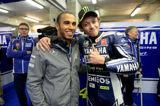 Rossi dan Hamilton berbagi sponsor di Monster Energy. Itu membuat jembatan untuk mereka berkomunikasi dan membuat acara ini menjadi kenyataan.