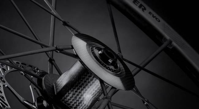 Wheelset ini full carbon. Bukan cuma rims yang berbahan karbon tapi juga spoke dan hub-nya juga karbon.