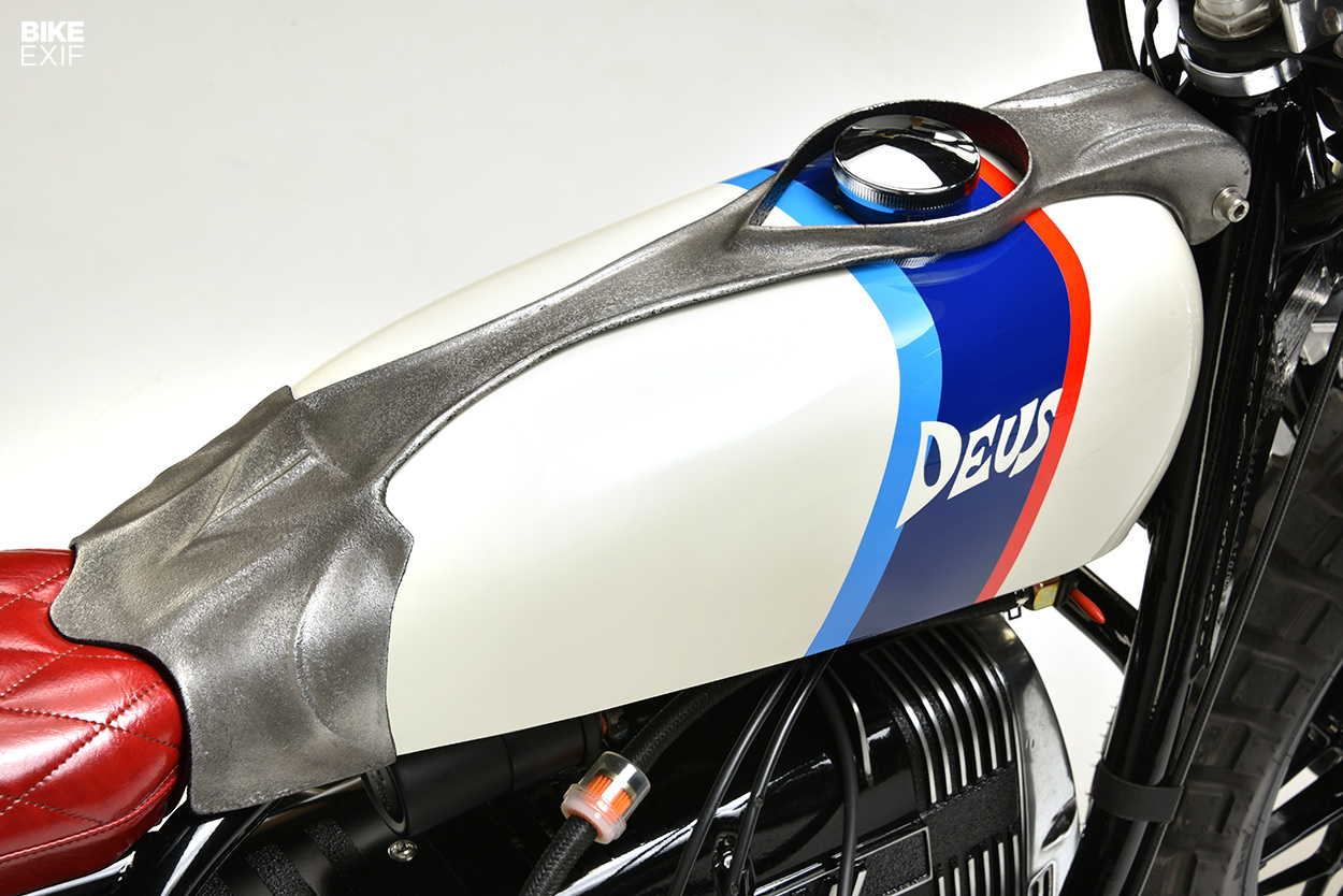 Secara sekilas, lo bisa melihat perbedaan tersebut ada di bagian tangki bensin, tail light, dan headlight. Ketiga part itu bisa dibongkar pasang dengan mudah untuk menciptakan kesan seakan BMW R100S satu ini adalah dua motor yang berbeda.