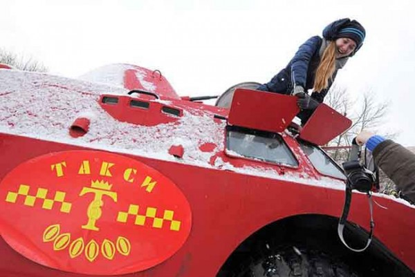 Taksi ini menjadi pusat perhatian orang-orang yang berada di sekitar jalanan St. Petersburg. Taksi Tempur ini bertipe BRMD-2 Combat Command dan Reconnaissance Vehicle yang dibuat oleh Uni Soviet pada tahun 1963 hingga akhir produksi 1989.