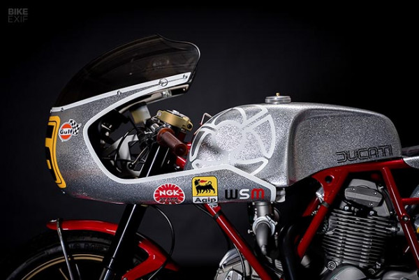 "Saya memilih gaya 80-an Ducati, saya ingin menggunakan salah satu yang terakhir dari Bevel besar yang agung, dan membangun racer dengan bentuk mesin kotak persegi," kata Walt.