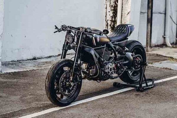 Untuk menambah tampilan, Winston juga memasang swingarm dengan satu sisi milik Monster 1100. Itu adalah setelan yang rumit-dengan sedikit shimming yang dibutuhkan di sisi mesin.