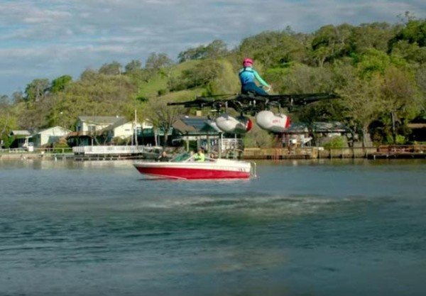 Mirip dengan drone yang bisa dikendalikan, kendaraan ini cukup lincah terbang di atas danau di San Fransisco, Amerika Serikat.
