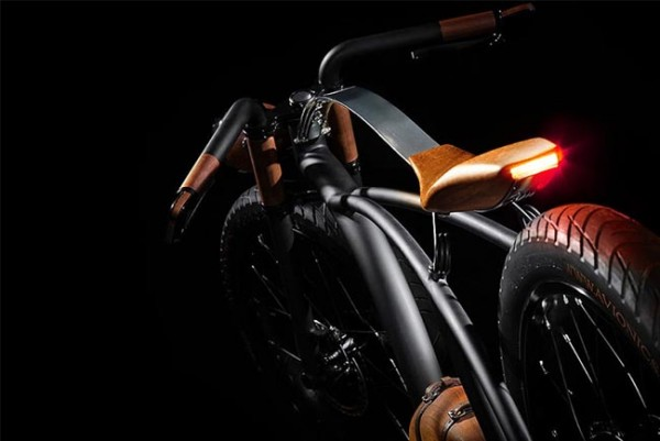 Nah, dibagian pelana dan casing lampu terbuat dari kayu. Buat pegangannya memakai kulit lentur berwarna cokelat untuk menjaga kenyamanan saat memegang setir. Wah keren kan, kalo dibawa buat jalan-jalan asik juga nih.