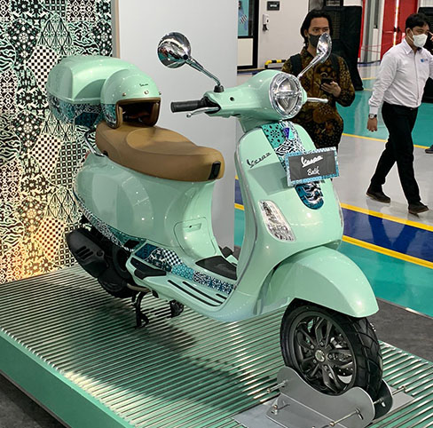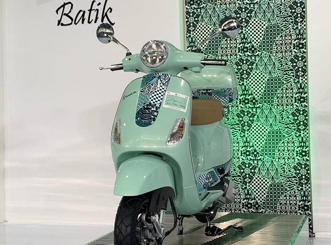 Vespa berkolaborasi dengan desainer ternama Iwan Tirta buat proyek ini. Dia memberikan motif batik perisai, megamendung, kasuari, sokowani, tenun ikat menjangan, kawung dan poleng dari Bali.