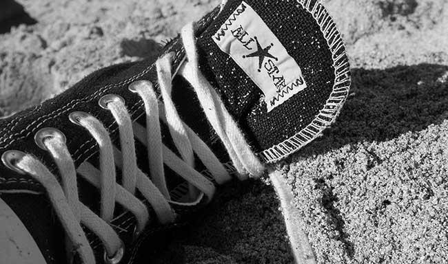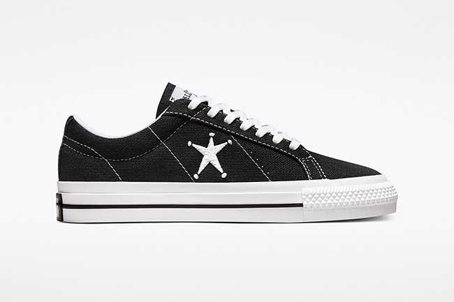 Kedua sepatu ini hadir dalam palet hitam dan putih klasik, dengan detail jahitan atas putih menambahkan sentuhan kontras. Chuck 70 Hi menampilkan motif bintang dalam gaya khas Stussy.