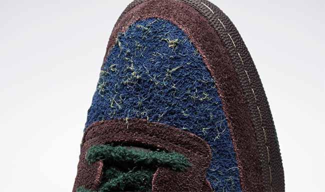 Suede yang lebih halus di lapisan atas dengan kulit. Sementara busa yang terbuka digunakan untuk lidah. Co-branding menyentuh lidah dan sol sementara teks 'Brain Dead' dipasang di bagian branding samping.