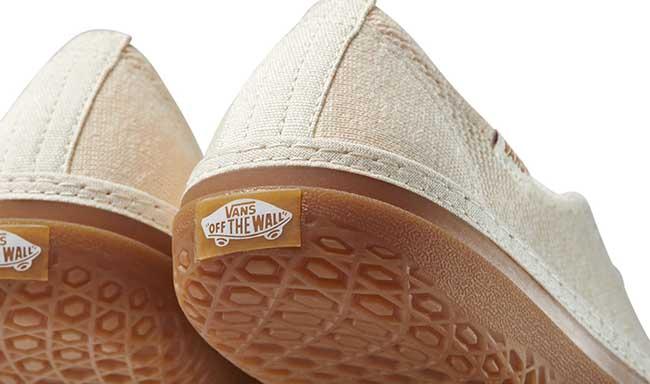 Bagian atas itu juga menampilkan nuansa klasik dari DNA Vans. Bagian atas itu juga dijahit langsung ke sol dan terbuat dari 48 persen katun organik, 47 persen rami, dan 5 persen nilon, sedangkan talinya terbuat dari 100 persen serat goni alami.