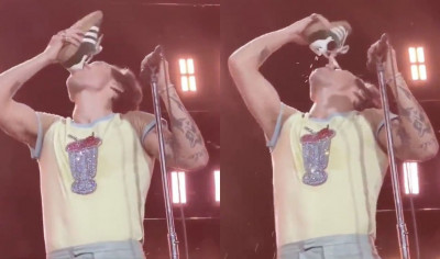 Harry Styles Minum Air dari Sepatu